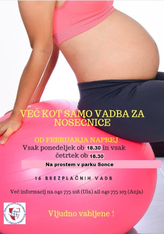 VARNA VADBA V NOSEČNOSTI Pubblicato il 14/06/202014/06/2020 di admin Ponovno bomo začeli z izvajanjem brezplačne varne vadbe za nosečnice. Začetek 15.6.2020. Obvezna prijava na: anja.pavlic@zd-piran.si ali na tel. št. 040 775 103